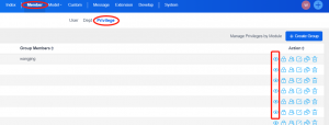 Click the operating buttons the right side of the "Admin" - "Member" - "Privilege" to enter the privileges management page.