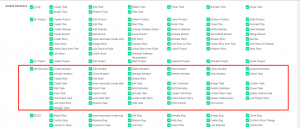 The privilege management page of the execution sight: checked to assign permissions, unchecked it to not assign permissions.