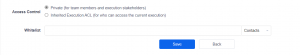 When creating an execution, the default access control is private, and a whitelist of users can be set under private.